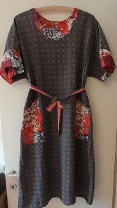 לפני כארבע שנים בגלל הגיל התקצרתי ובגלל מחלת הסתיידות הגידים והתרופות שאני מקבלת עבורה איבדתי משקל, אז החלטתי שאאריך מעט את השרוולים ואוסיף כיסים, פחת הצוואר בגזרה הנוכחית ישב די בסדר, והיו לי מספיק שמלות שבהן שינויי פתח הצוואר היה דחוף יותר, לכן זה נדחה עד עכשו.